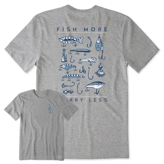 Men's Fish More Worry Less Hooks and Tackle Short Sleeve Tee