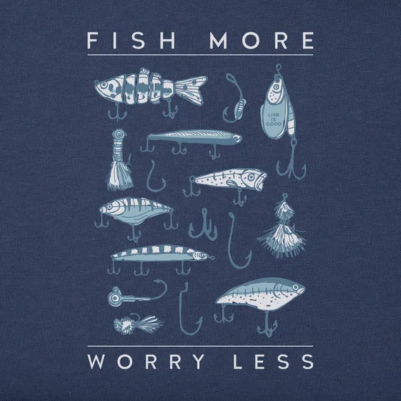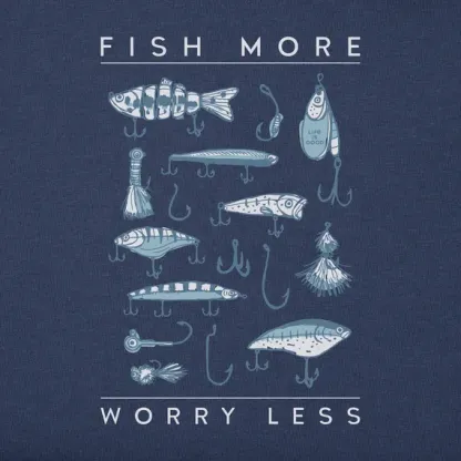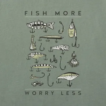 Men's Fish More Worry Less Hooks and Tackle Short Sleeve Tee