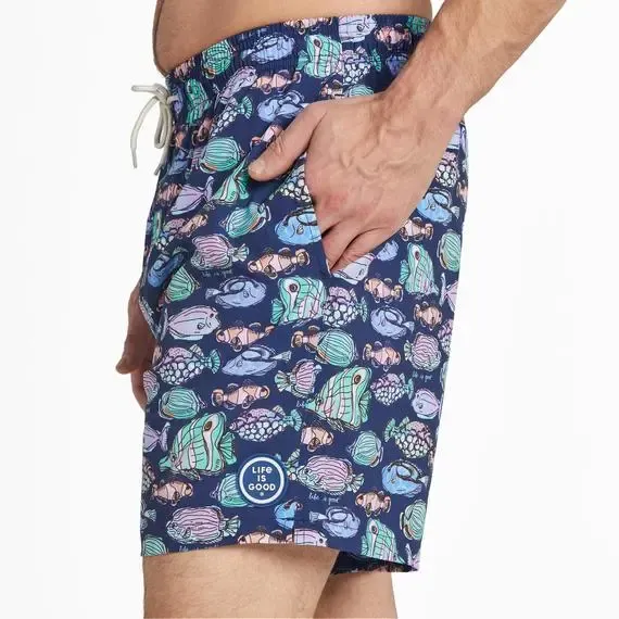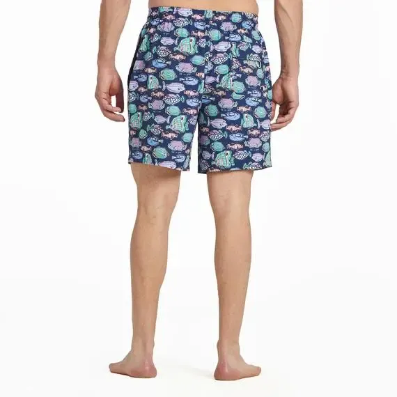 Cannonball into the water or casually hang in the sun in these swim trunks. An elastic waist and tie front ensure all-day comfort, while back and side pockets offer somewhere to store your stuff while shoreside.