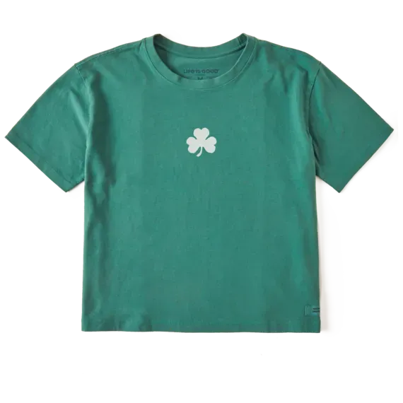 Our relaxed-fit Crusher Tee, in a cool cropped (but not too cropped) length. Washed for everyday softness and falls loosely off the body.