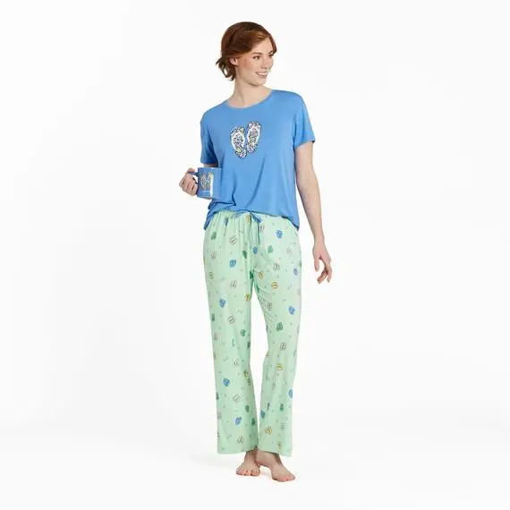 Women's Flip Flop Daisy Pattern Lightweight Sleep Pant