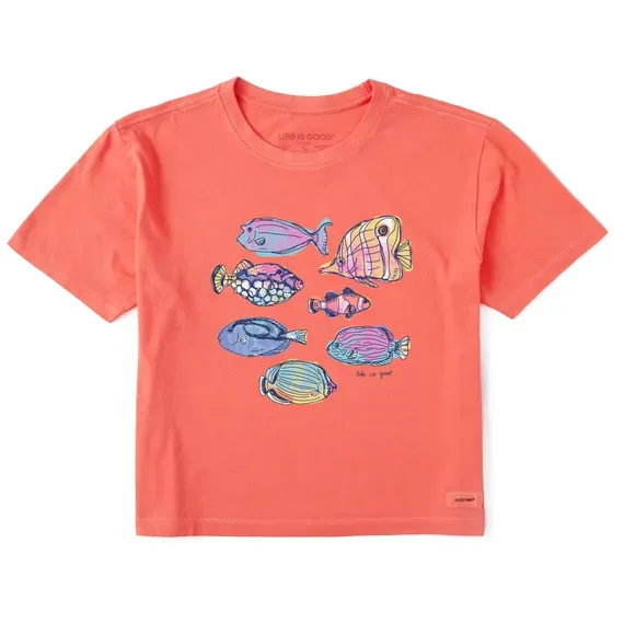 Women's Watercolor Tropical Fish Crusher Boxy Tee